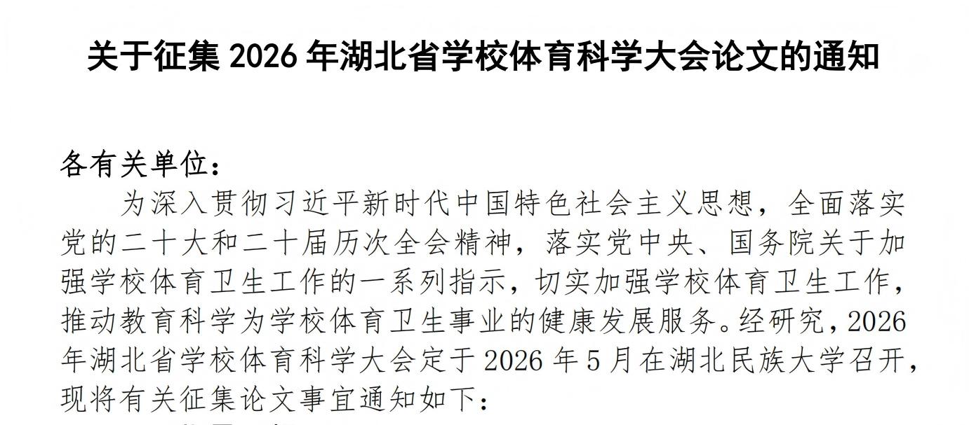 关于征集2026年湖北省学校体育科学大会论文的通知